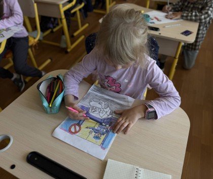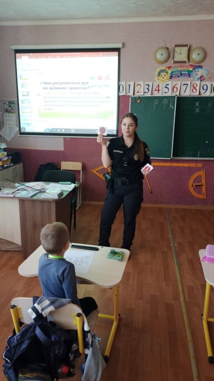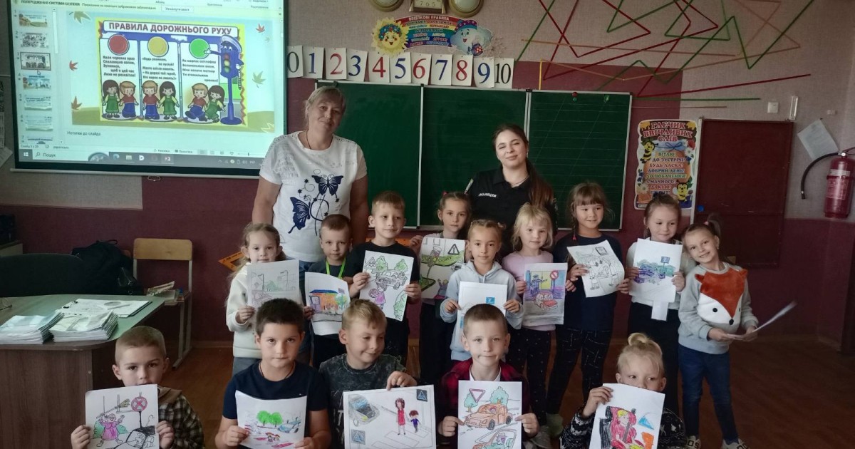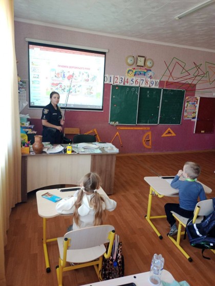 Надзвичайно цікаве заняття провела інспектор сектору ,,Служба освітньої безпеки'' Валерія Мовчан для учнів 1- Б класу ,,Увага! Діти на дорозі!'' Учні із задоволенням повторили знайомі правила дорожнього руху, дізнались про дорожні знаки, відгадували загадки, розфарбовували тематичні розмальовки. А класний керівник Ірина Мирошник розповіла про безпечну дорогу до школи та до дому.