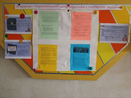 години спілкування «Люди не товар», «Безпечне працевлаштування за кордоном» та «Торгівля людьми: міф чи реальність?». Обговорили сучасні форми рабства, найпоширеніші схеми вербування та правила безпечної поведінки вдома та за кордоном. Також оформили інформаційний стенд, де діти самостійно зможуть ознайомитися з ключовими порадами щодо безпеки та важливими контактними даними гарячих ліній для постраждалих та свідків.