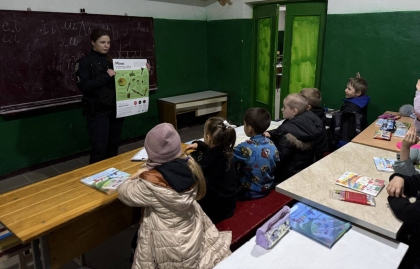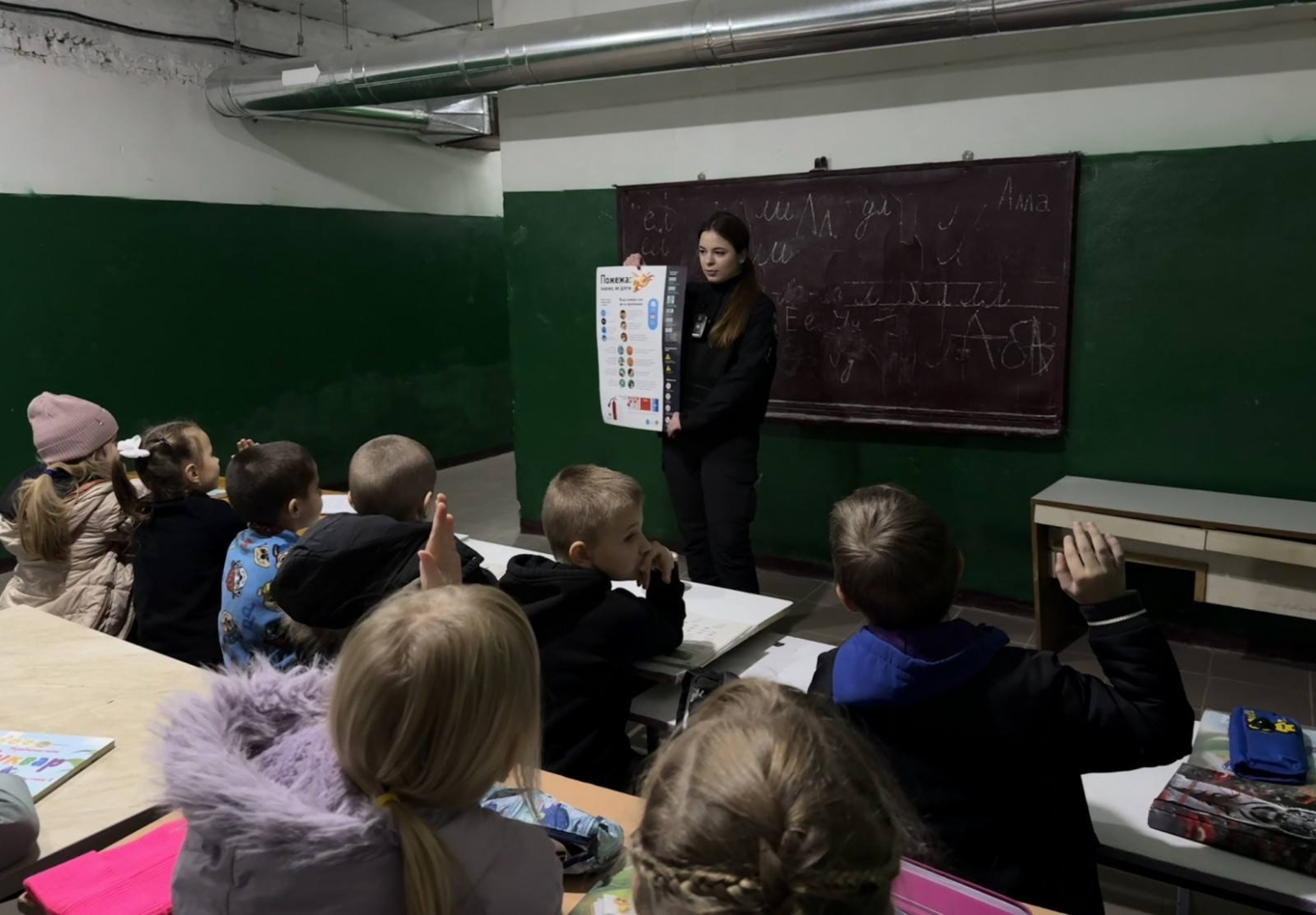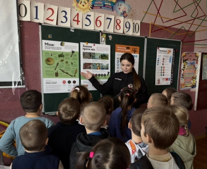 Інспектором сектору "Служба освітньої безпеки" Валерією Мовчан для учнів перших класів було проведено пізнавальне та важливе заняття з мінної безпеки. Діти дізналися, що робити у разі виявлення підозрілих предметів, як виглядають основні знаки попередження про мінну небезпеку та чому не можна гратися або наближатися до невідомих об’єктів.
