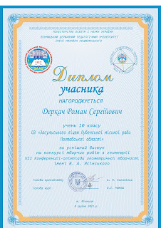 На Олімпіаду - конкурс цього року було подано 23 творчі роботи юних математиків з різних областей України. Роман виборов перемогу у заочному етапі змагання юних знавців геометрії.