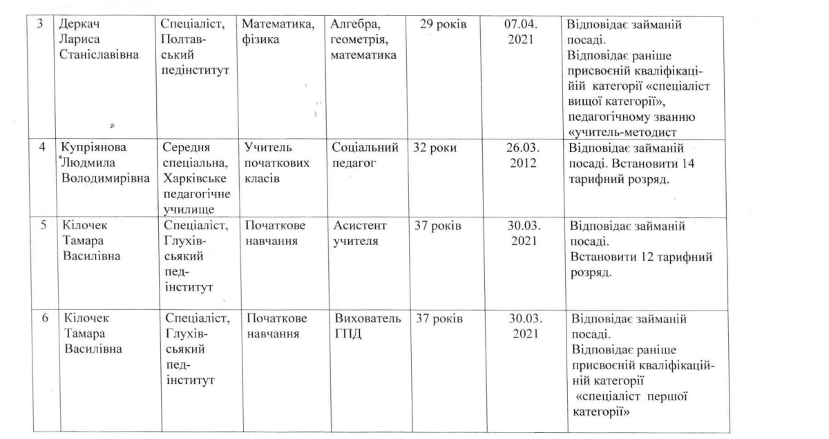 секретар комісії – Любов Третяк, заступник директора з навчальної роботи